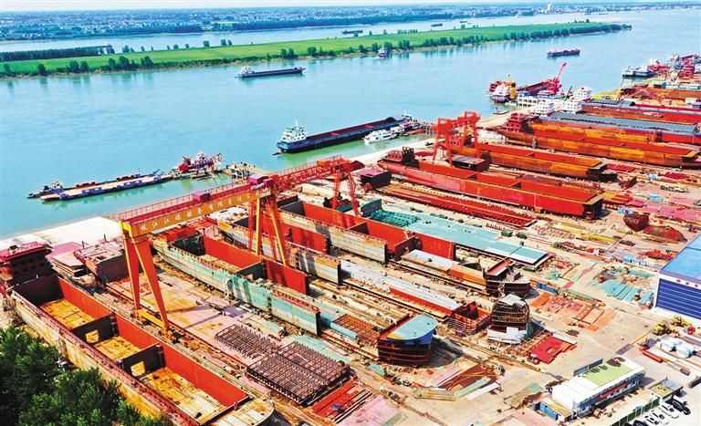 位于湖北省枝江市的宜昌船舶工业园在建造万吨级货轮。刘卫东摄(中经视觉)